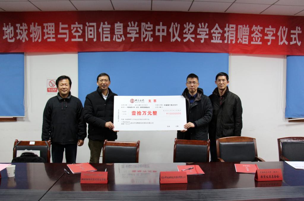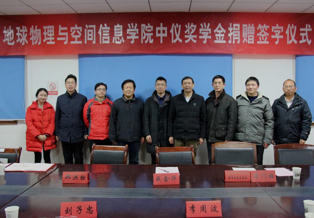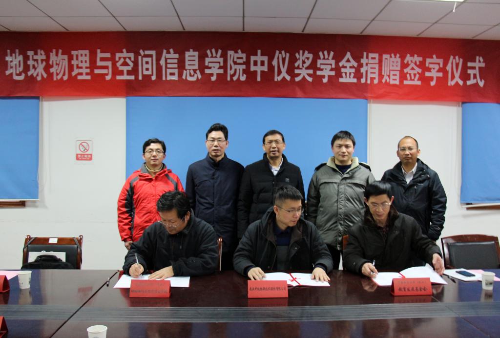 “中仪奖学金”捐赠仪式在物探楼214会议室举行。武汉中仪物联技术股份有限公司董事长郑洪标,总经理助理张婉珈,校党委副书记、纪委书记成金华,学校教育发展基金会副秘书长李门楼,麻豆tv