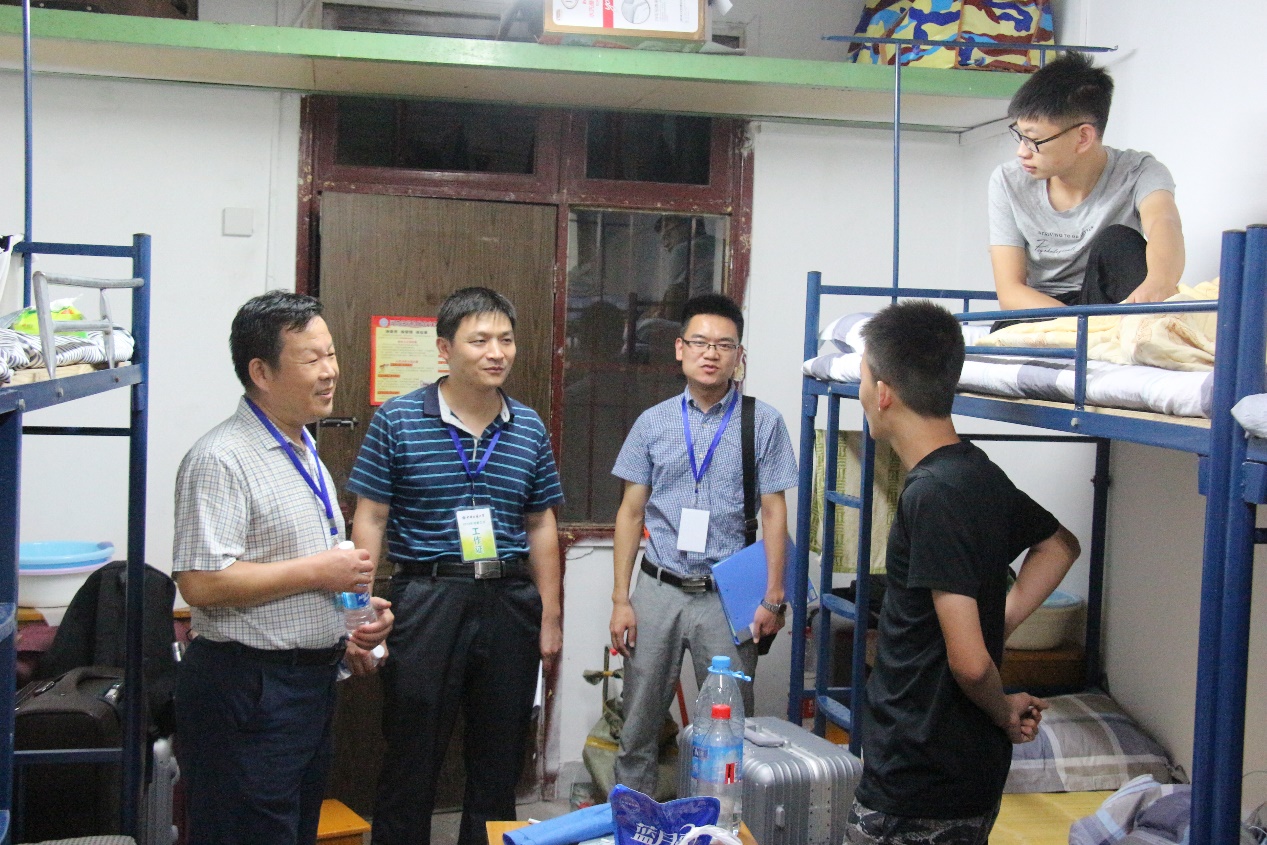 学院领导非常关心新生到校情况,多次到迎新点了解迎新进度,并带队走访新生宿舍。学院党委书记刘子忠、副书记李周波与2018级新生辅导员祁阳阳于9月2日下午4点一同到新生宿舍看望新生,与同学们进行了亲切的交谈。刘书记十分关心同学们到校后的适应情况,详细询问了同学们来校后的饮食、就寝、出行等生活情况,嘱咐新生们珍惜大学生活,努力学习。