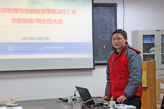 2017年班主任工作会议在物探楼214举行。学院副书记李周波、各班级班主任、校心理学研究所郭兰老师及学工组全体辅导员老师参加会议。会议由李周波主持。