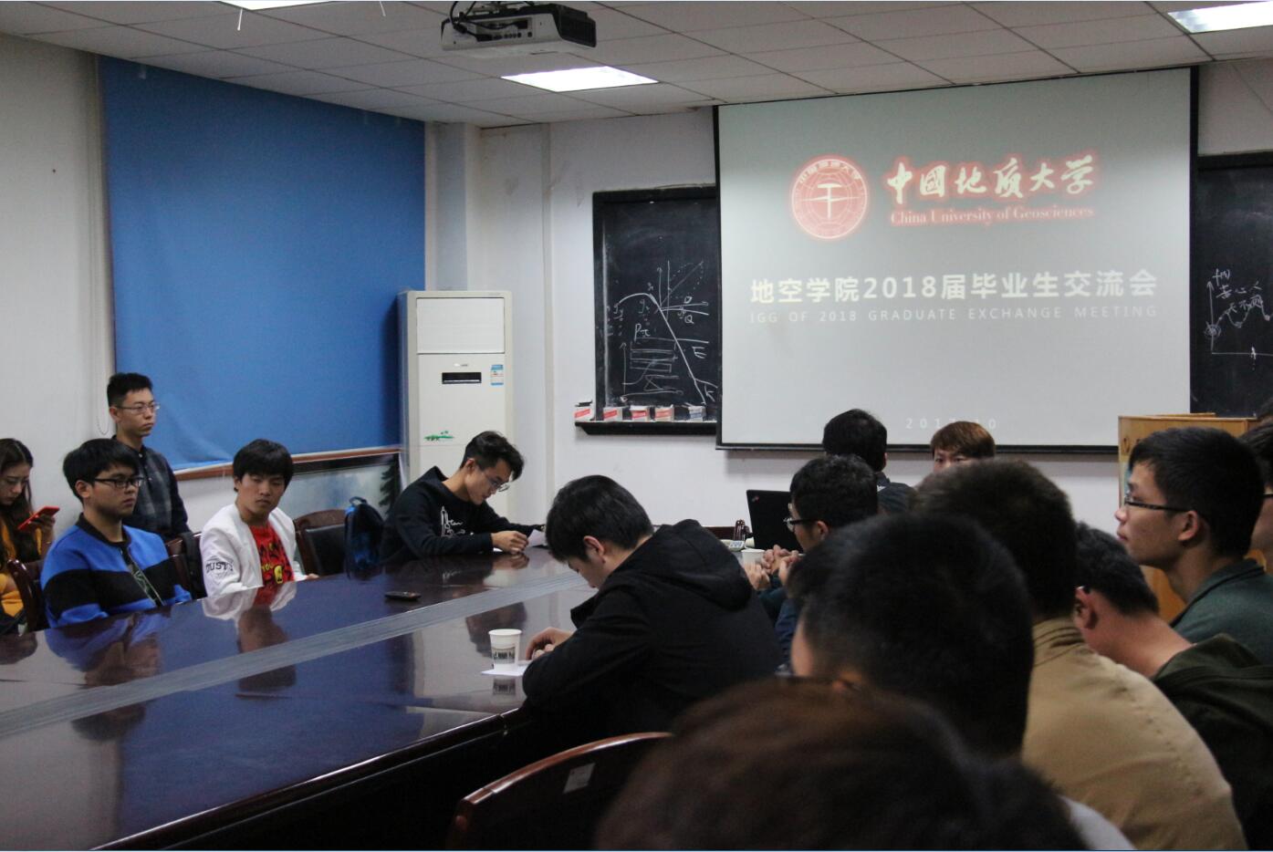 2018届毕业生考研、就业交流会在物探楼214成功举办。毕业生交流会共分为两场,分别为考研交流会和就业交流会,2018届考研、就业毕业生及部分2015级大三同学参加了本次交流会。