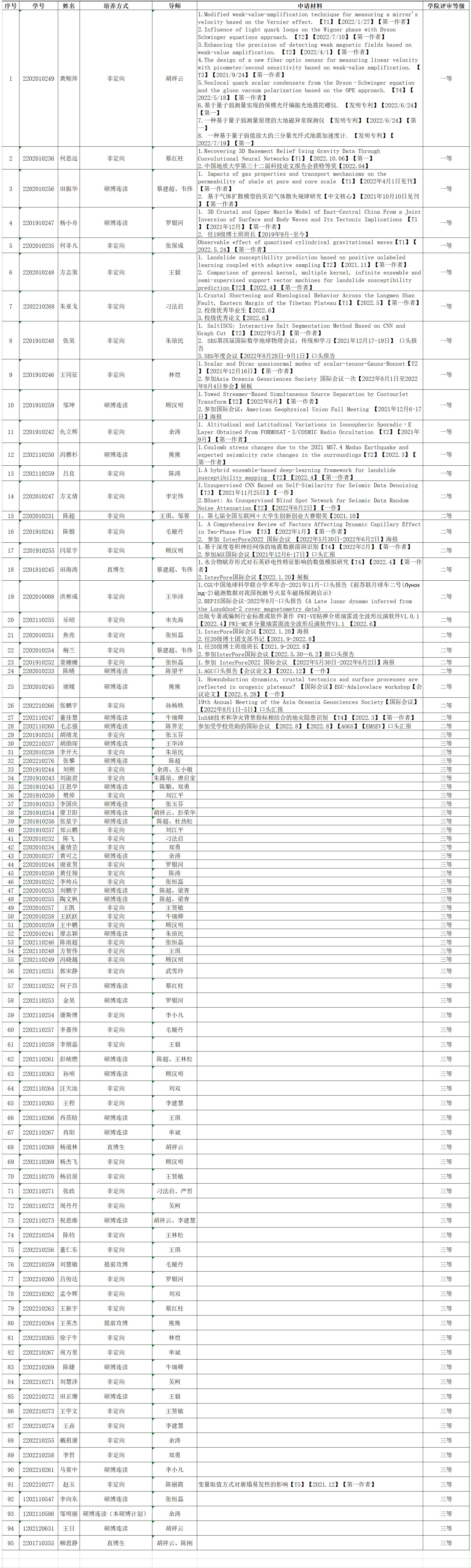2022-2023年度博士研究生奖助学金推荐名单进行公示: