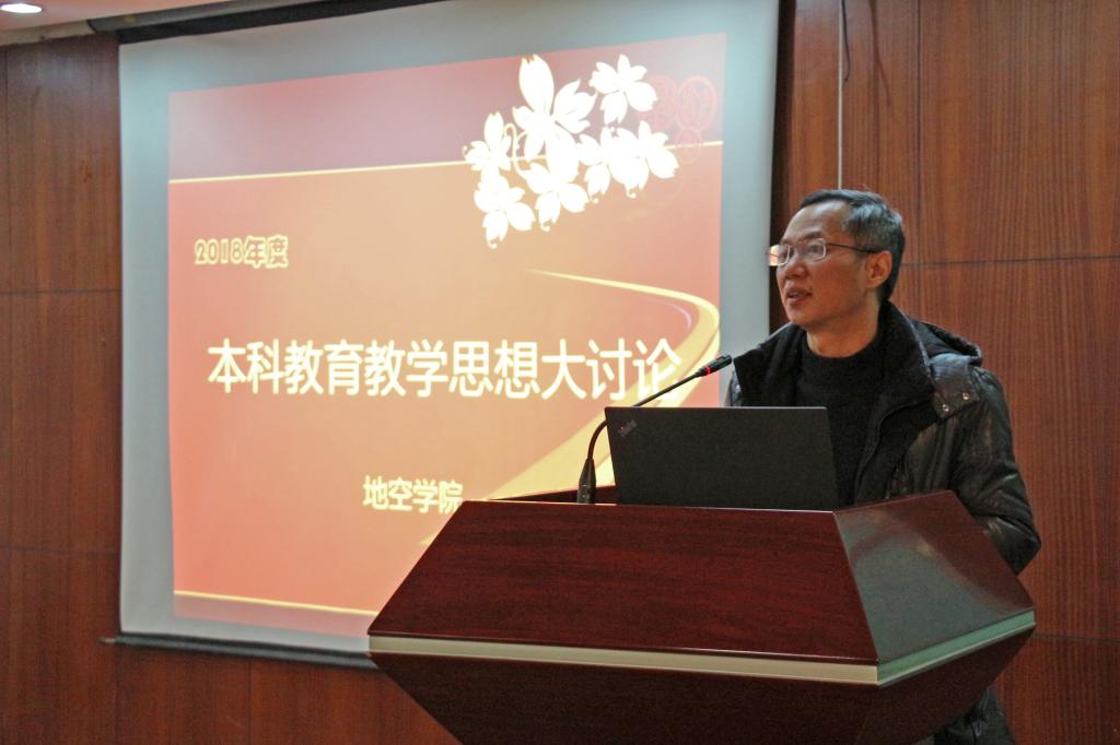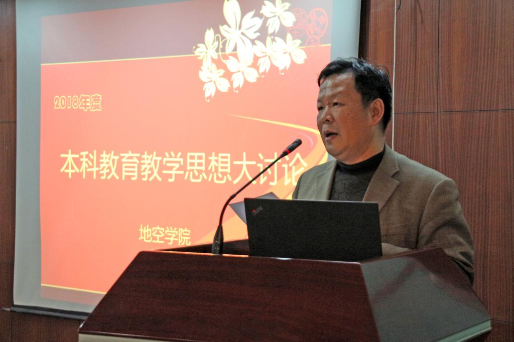 刘勇胜副校长总结发言,他要求地空全体教师明确教师的责任和担当,认真学习领悟本科教育教学思想,学习学校的相关政策和熟悉学校的教学资源,结合学院实际,以问题为导向,把“严在地大”落到实处,推进学院各项事业的快速发展。