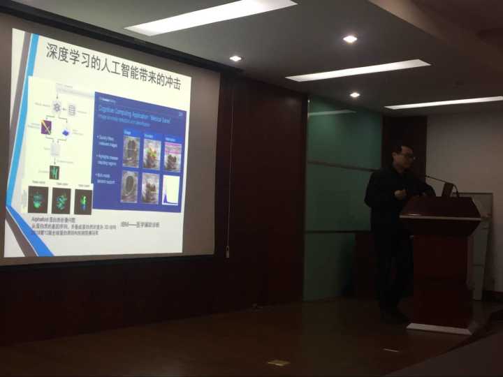 ,并在物探楼222学术报告厅做了题为“基于深度学习的人工智能简介”的学术报告,全校100多位师生参加了报告会,会议由熊熊院长主持。