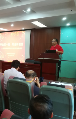 毕业生代表和老教师代表先后发言。毕业学生代表张宗胜站在台上,重新以一个学生谦逊的态度为自己昔日恩师讲述自己30年来的经历,或成就斐然,或略显平凡,但都受到了老师们的一致肯定。老教师潘玉玲表达了注重健康、廉洁奉公、守护家庭、珍惜时光、继续奋进等美好期盼,年近耄耋却依旧心怀国家,心系学子,让人动容。85级原辅导员、现任自动化学院党委书记董浩斌发言。他回顾了当年与学生打成一片的种种往事,感叹岁月之蹉跎,同时也表达了始终不变的物探人情怀让人敬重。