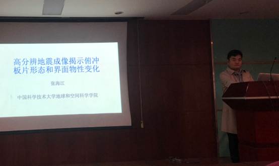 ,并在物探楼222学术报告厅做关于“高分辨地震成像揭示俯冲板片形态和界面物性变化”的学术报告,全校40多位师生到场聆听。