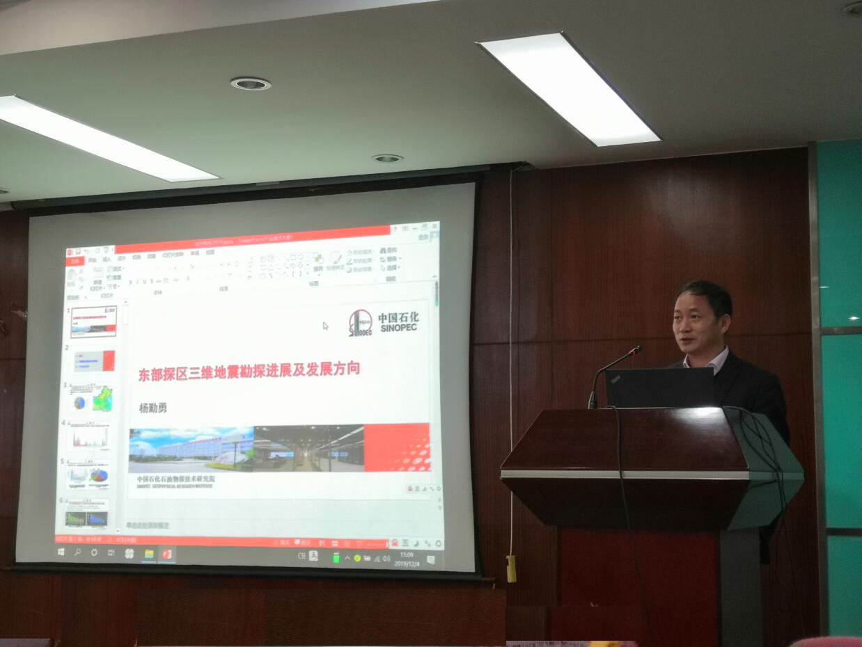 访问,并在物探楼222学术报告厅做了“中国东部探区三维地震勘探进展及发展方向”的学术报告,全校从事油气地震勘探方向的师生到场聆听讲座。