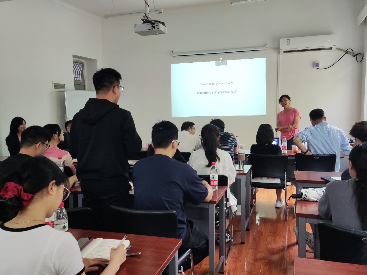 报告后的讨论环节,贾秀萍老师与在场的师生进行了热烈广泛的交流,并就写作时如何分配论文内容、怎样回复审稿意见等进行讨论并给出建议,现场氛围十分活跃。
