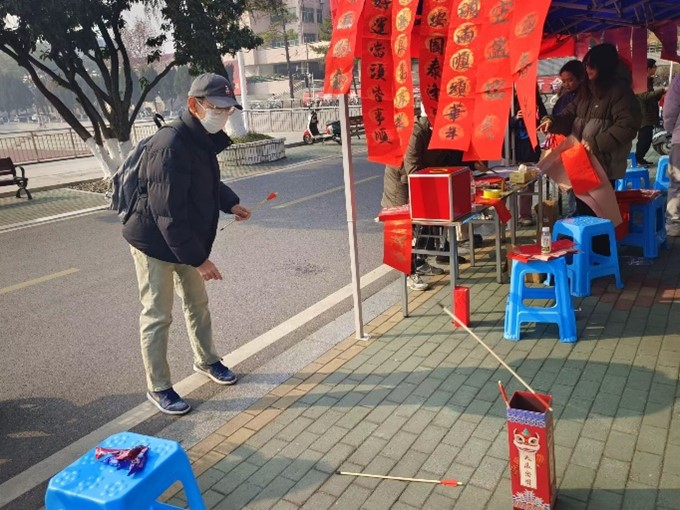 本次活动以传统小游戏和写春联抽奖活动为主体,吸引力一大批热爱传统文化,喜爱书法的人参加,无论是同学老师,还是老人小孩,大家的热情高涨,一批又一批的人来到到体育馆门前参加此次活动,大家脸上都洋溢着开心的笑容。