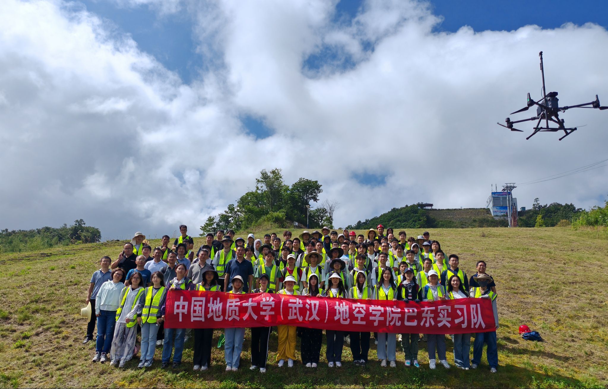 7月26日,马彦周、黄金波跟随实习队师生前往绿葱坡工区进行无人机航磁试验,实地了解实习队野外实习情况。在野外实习现场,磁法组组长刘双老师向两位领导汇报了磁法实习的进展和完成情况,介绍了学院无人机航磁平台的设备购置情况,讲解了无人机航磁的优势,广泛应用于地质调查、矿产资源探测、工程勘察等领域,着力培养学生实践能力。