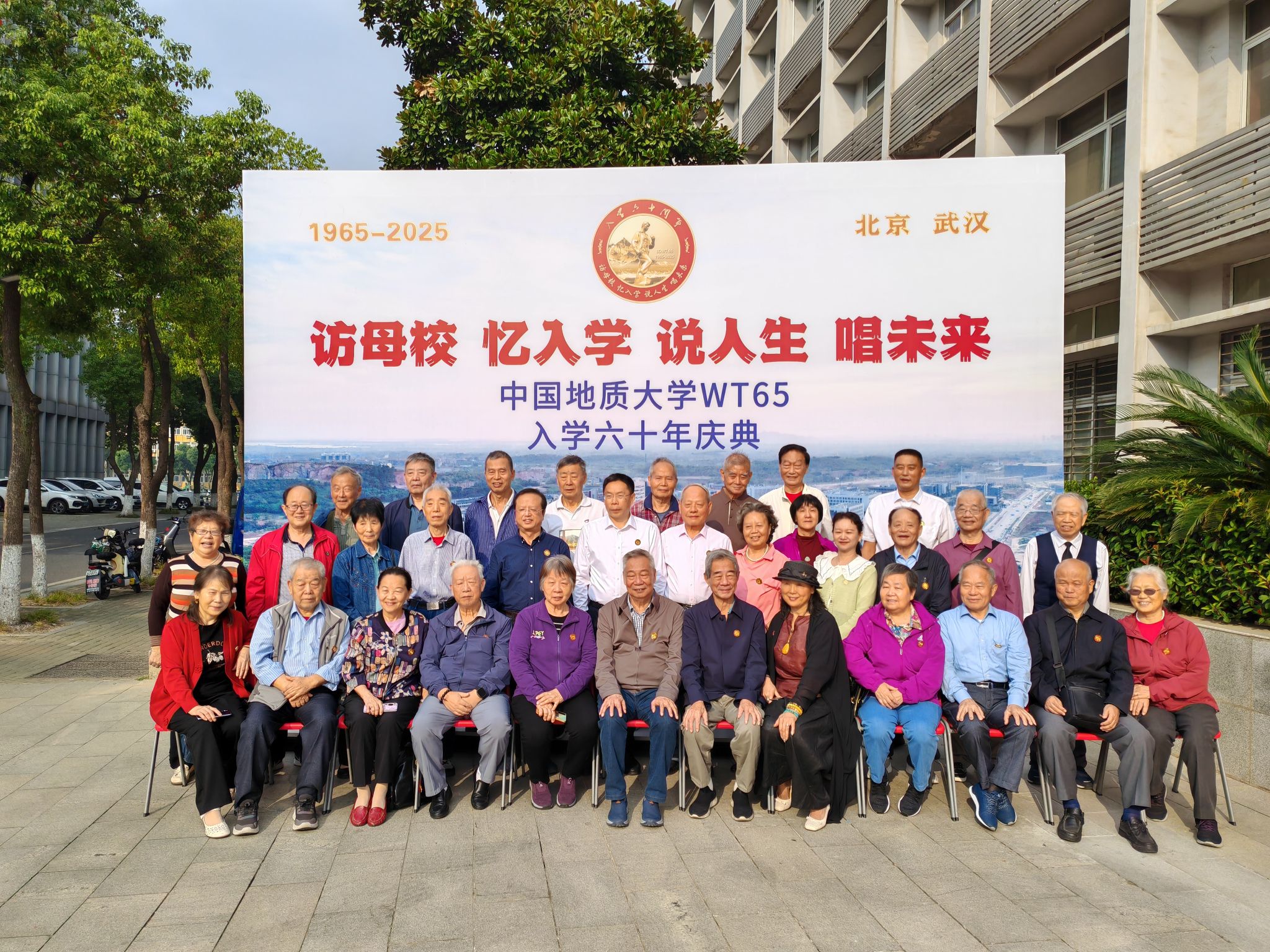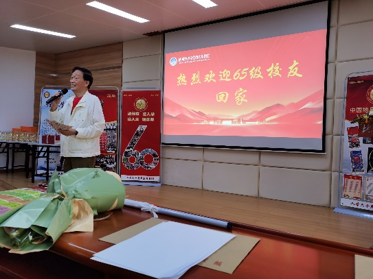 学科建设、人才培养和科学研究取得的成果。老校友们为学校南迁武汉后地球物理学科建设取得的丰硕成果倍感欣慰。学校图书档案与文博部长帅斌详细介绍了学校 1970年前后响应国家号召离开北京南迁办学的艰难经历。刘庆生代表65级同学会向学校赠送了聚会纪念徽章。大会在麻豆tv