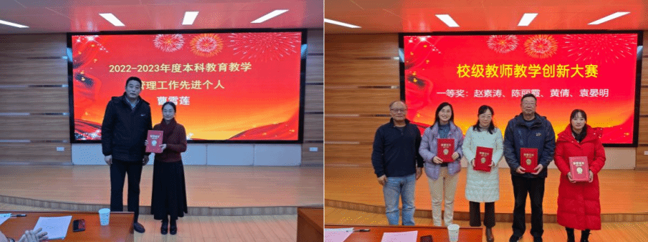 会上,学院对2022-2023年度本科教育教学管理工作、教学创新大赛、青年教师教学竞赛、本科教学质量评价先进个人,以及本科毕业论文优秀指导教师、硕士学位论文优秀指导教师、博士学位论文优秀指导教师进行表彰。