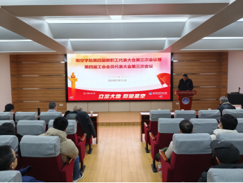 第四届教职工大会第三次会议暨第四届工会会员大会第三次会议。学院领导班子成员、教职工、离退休教师代表参加会议。大会由学院副院长罗银河主持。