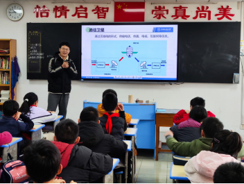 宣讲团成员黄润林、张志轩通过"卫星功能连连看""地震逃生大闯关"等趣味互动,将深奥的专业知识转化为寓教于乐的科普实践。在知识竞答环节,十名学生脱颖而出,宣讲团成员为获奖的小朋友们赠送科普读物与卫星模型。