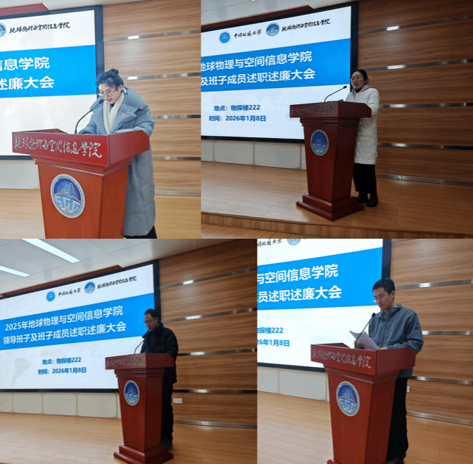 罗银河院长代表学院班子以“抓重点、克难点、创亮点,高质量完成学院2025年目标任务”为主题,从工作思路、主要举措与成效、2026 年重点工作三个方面展开述职。报告指出,2025年学院坚持以习近平新时代中国特色社会主义思想为指导,全面贯彻党的二十届三中、四中全会及全国教育大会精神,紧扣“深化改革、教育强国建设地大实践”工作主线,扎实推进“十四五”收官与“十五五”谋划,以高质量党建引领学院高质量发展,培养质量实现新提升、人才引育取得新成效、科技创新获得新突破、平台建设再上新台阶、社会服务呈现新面貌。