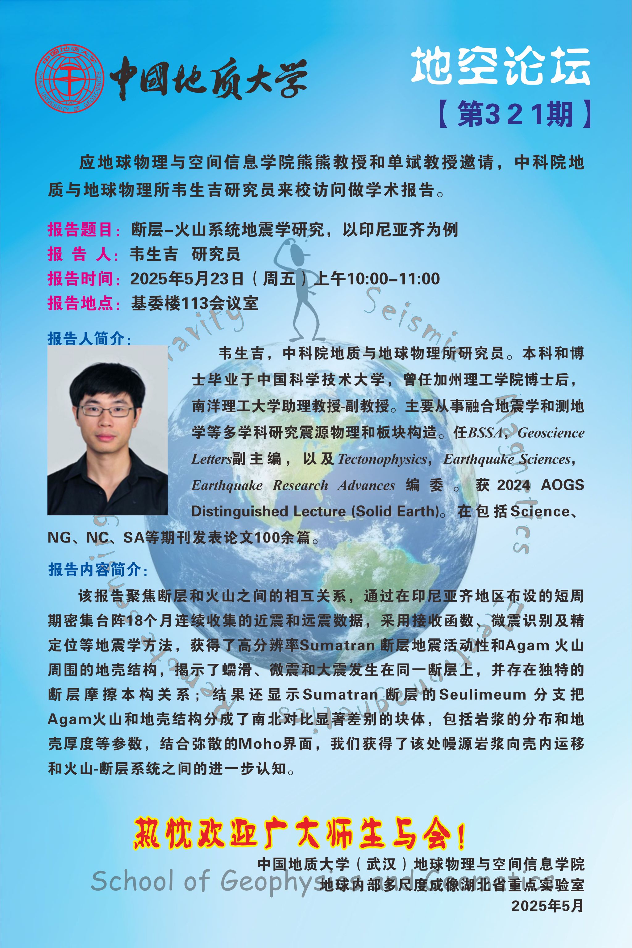 地空论坛【第321期】中科院地质与地球物理所 韦生吉 研究员
