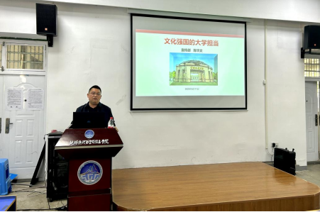 第74期入党积极分子培训班全体学员讲授题为《文化强国的大学担当》专题党课。